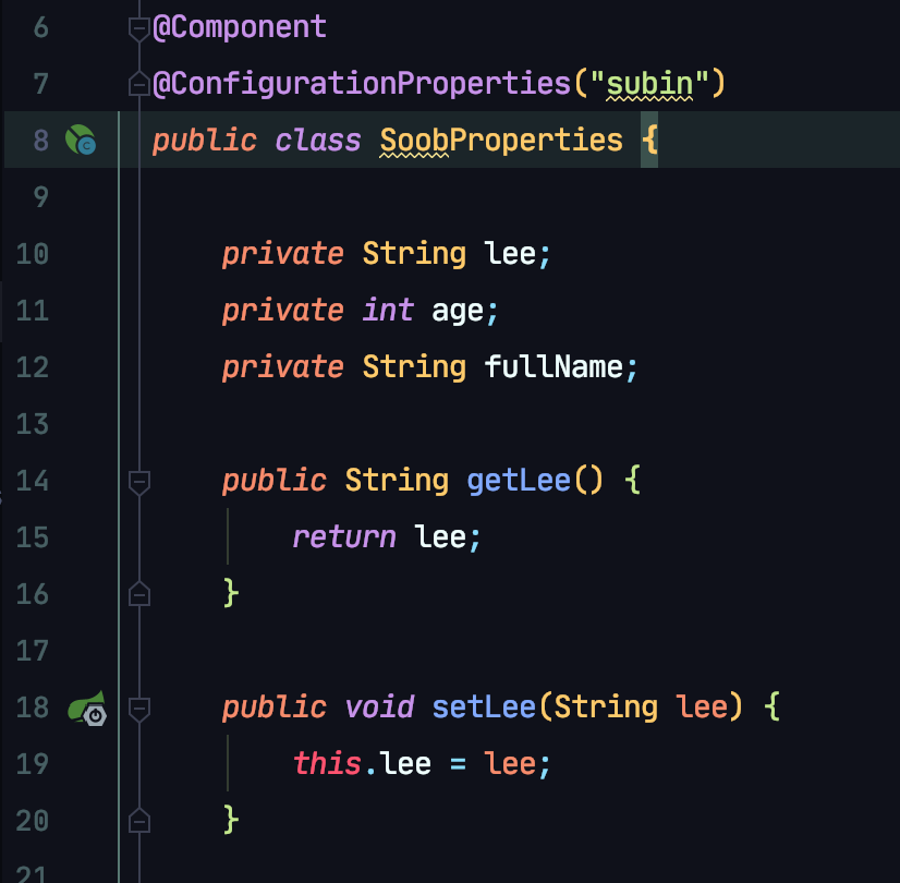 그러나 이런식으로 클래스를 생성하고@ConfigurationProperties를 사용하는 것이 매핑도 유연하고 장점이 있어 추천한다.