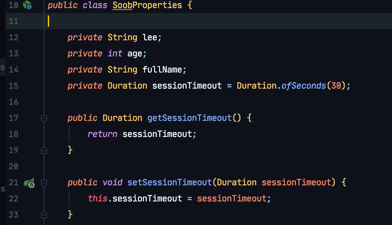 Bean 으로 등록되는 클래스와 바인딩될 때, String, int, Duration 등으로 모두 타입 컨버전 된다. (이는 스프링이 제공하는 기능)