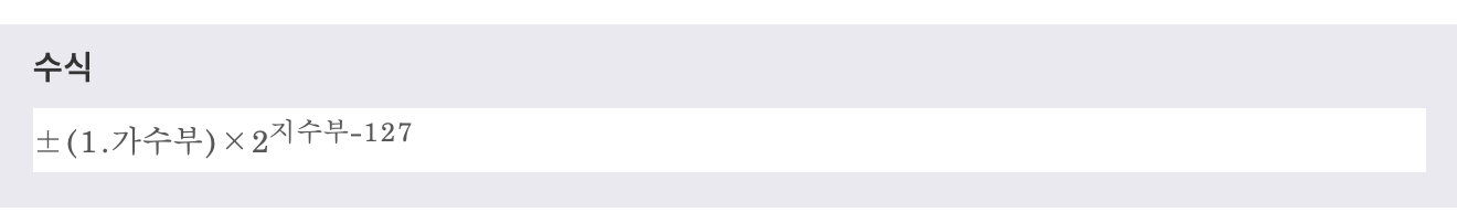 부동 소수점 방식은 이렇게 하나의 실수를 가수부와 지수부로 나누어 표현하는 방식이다.