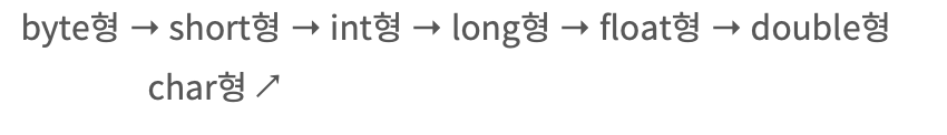 자바에서는 데이터의 손실이 발생하지 않거나, 데이터의 손실이 최소화되는 방향으로 묵시적 타입 변환을 진행한다.