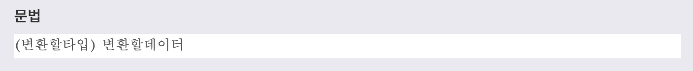 변환시키고자 하는 데이터의 앞에 괄호(())를 넣고, 그 괄호 안에 변환할 타입을 적으면 된다.