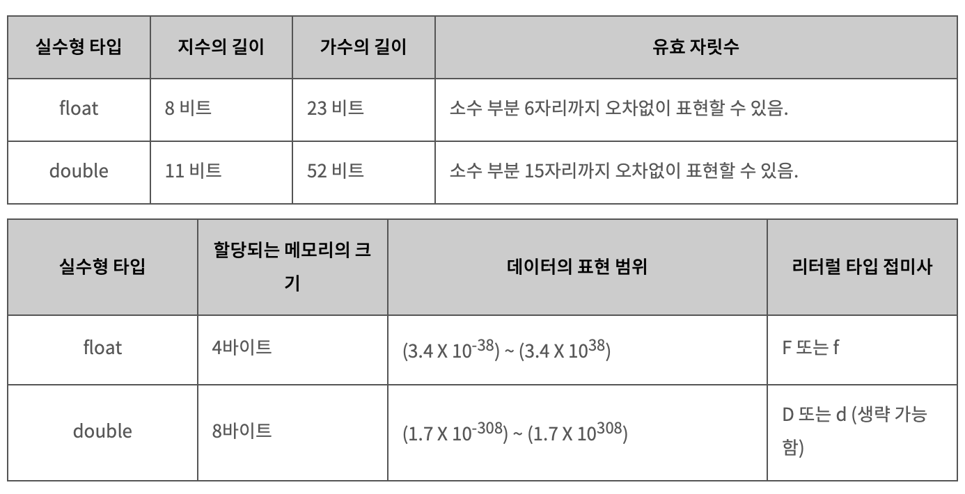 실수는 보통 정수부와 소수부로 나눌 수 있다.