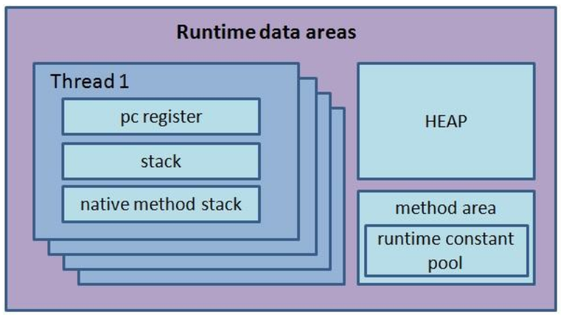 PC 레지스터, 스택, 네이티브 메서드 스택은 스레드마다 하나씩 생성되고 힙, 메서드 영역은 모든 스레드가 공유해서 사용한다.