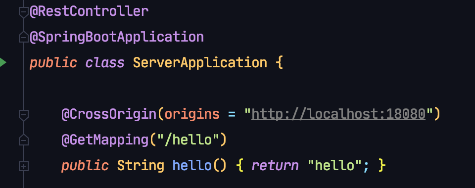 CORS 를 사용하기 위해 @CrossOrign(origin = "다른 origin") 애노테이션 활용