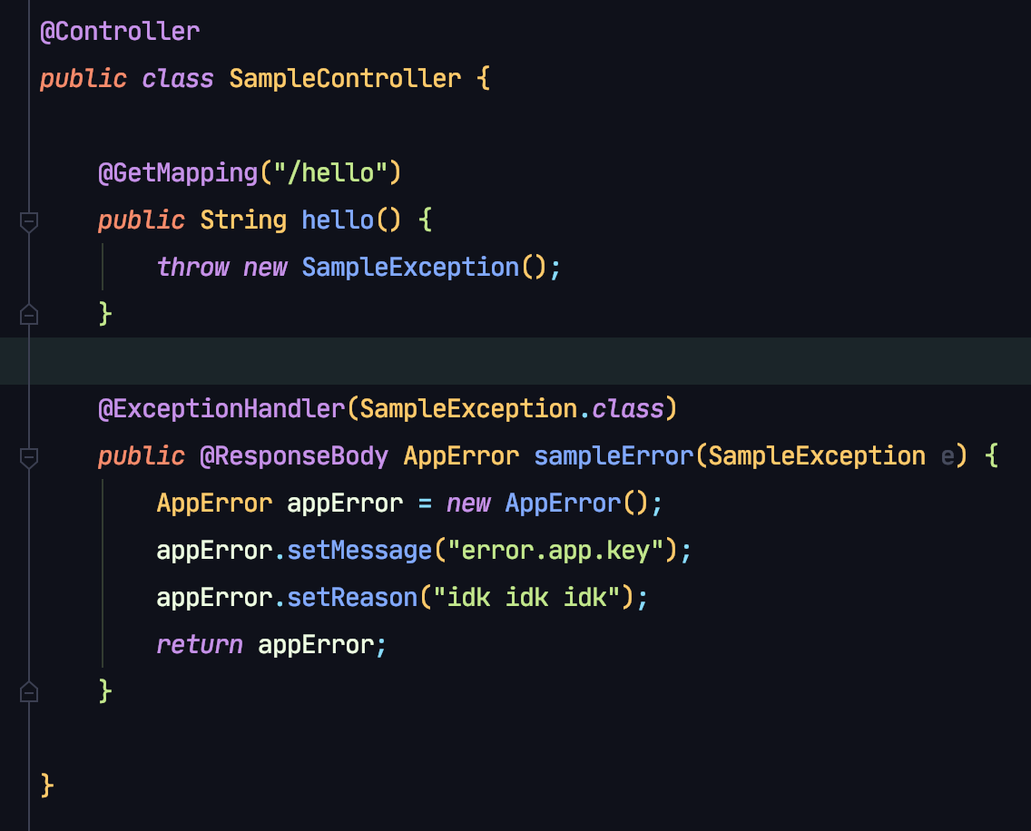 여기서 바로 AppError로 반환하는데 ResponseEntity<AppError>처럼 보낼 수 도 있다.
