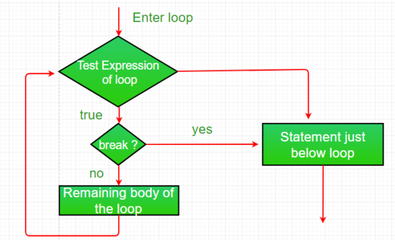 Using break, we can force immediate termination of a loop, bypassing the conditional expression and any remaining code in the body of loop.