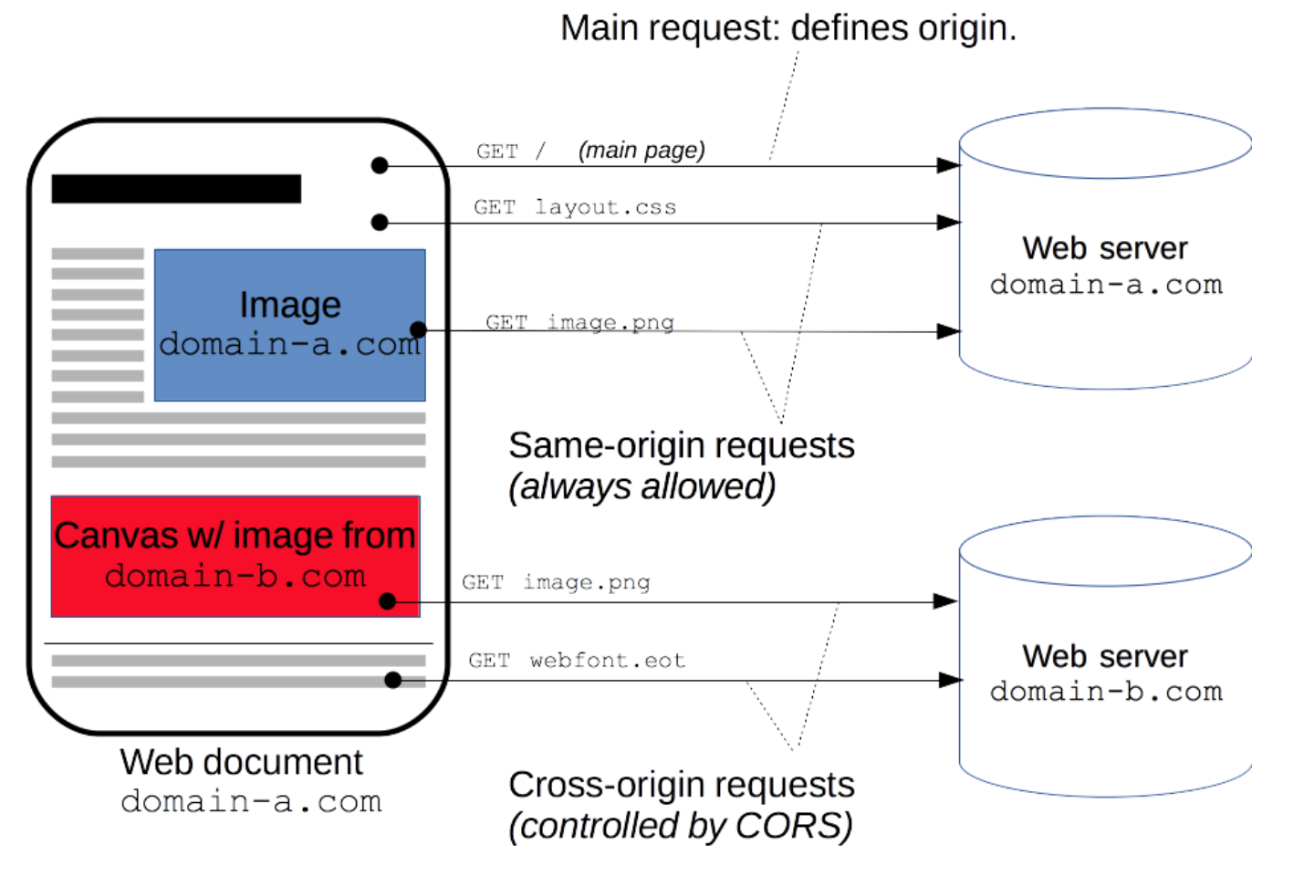 추가 HTTP 헤더를 사용하여, 한 출처에서 실행 중인 웹 애플리케이션이 다른 출처의 선택한 자원에 접근할 수 있도록 권한을 부여하도록 브라우저에 알려주는 체제이다.