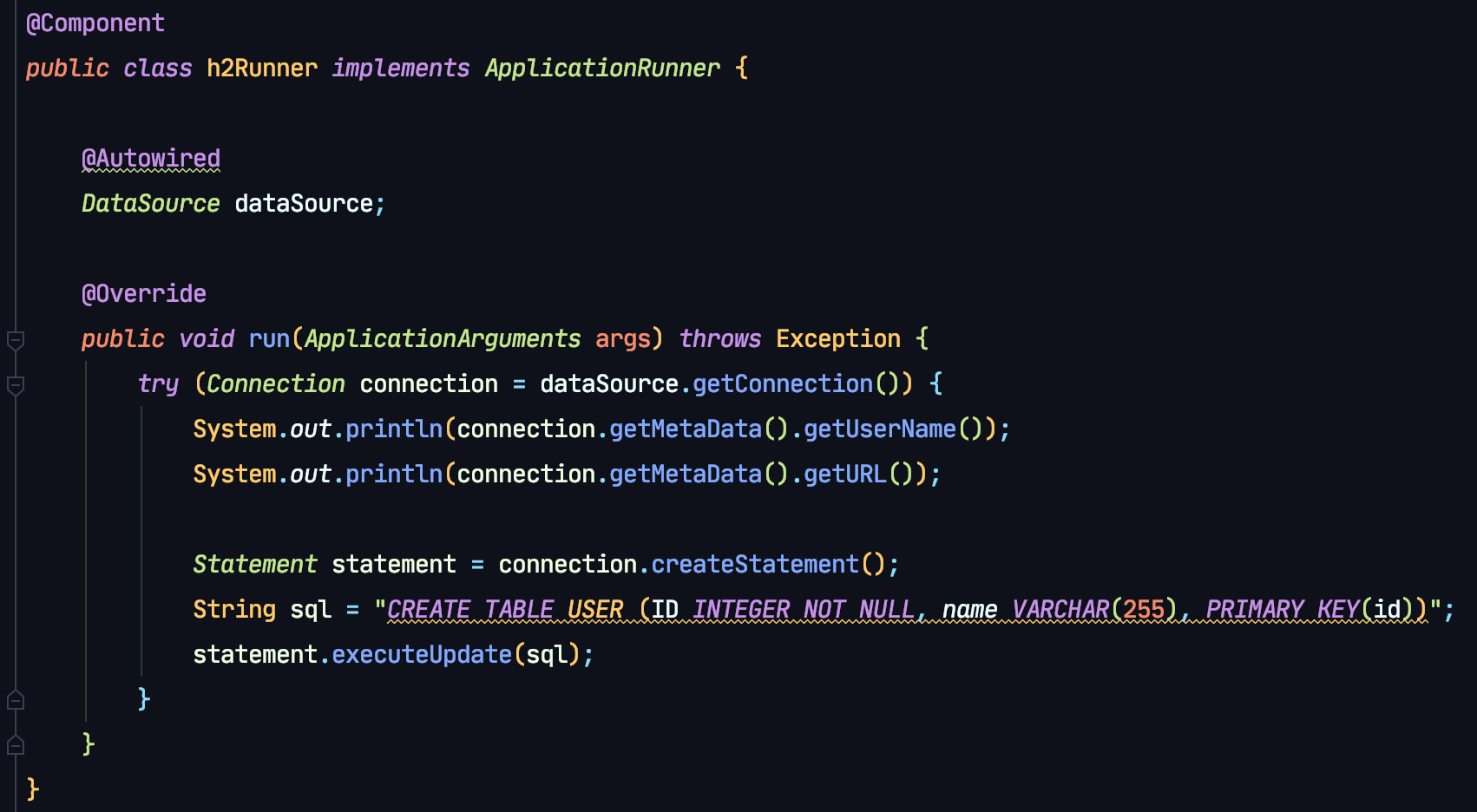 의존성 추가 아무런 데이터 소스 설정이 없으면, 스프링 부트는 자동으로 인메모리 데이터베이스를 설정한다.