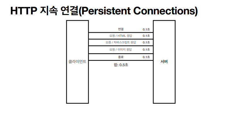 그래서 지금은 HTTP 지속 연결 (Persistent Connections) 로 문제 해결하고 HTTP/2, HTTP/3 에서 더 많은 최적화를 할 수 있다.