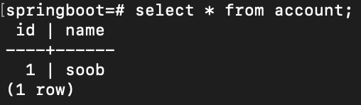 PostgreSQL 에서는 USER가 키워드라서 account라는 이름으로 생성