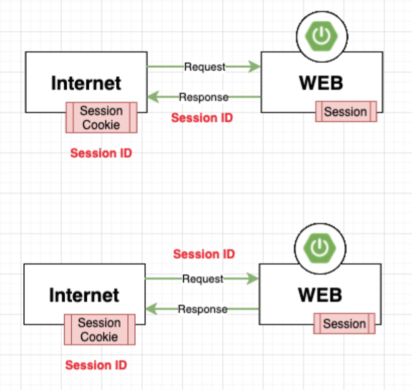 - 처음 Request 에는 세션 정보가 없기에 서버에서 session id 를 발급해준다.
