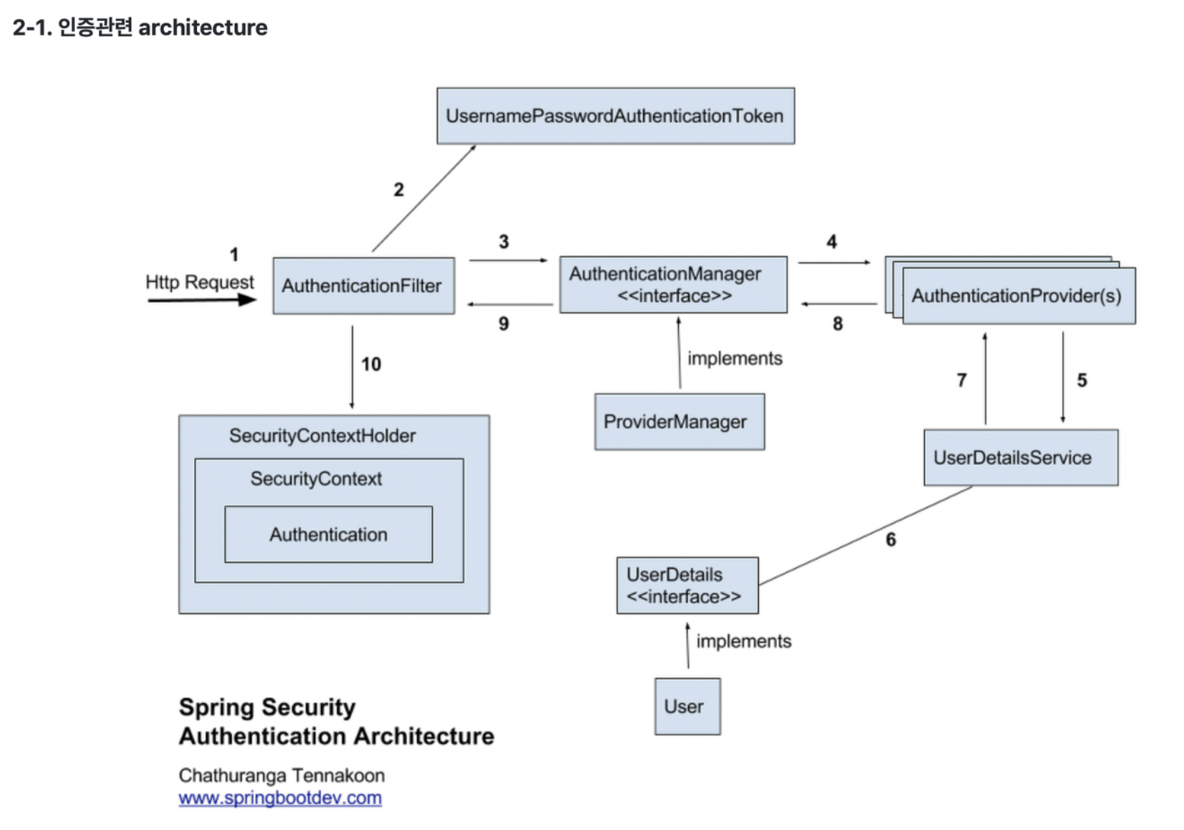 1. 사용자가 로그인 정보와 함께 인증 요청 (Http Request)