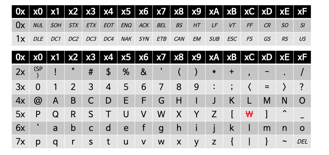 - 그래서 이전에는 흔히 영숫자는 1바이트, 한글은 2바이트라고 했음