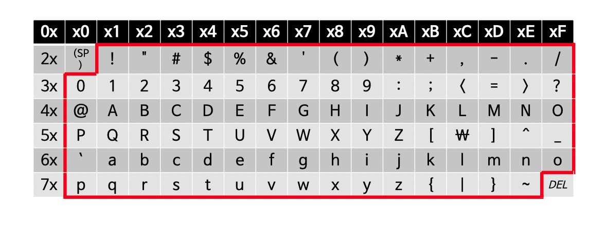 - 그래서 이전에는 흔히 영숫자는 1바이트, 한글은 2바이트라고 했음