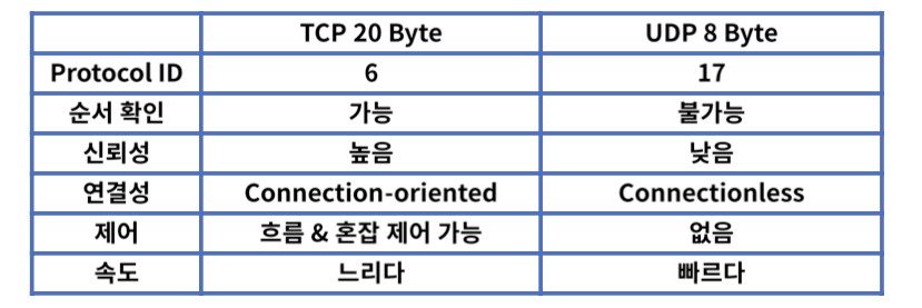 - 재전송 불가, 실시간 데이터 전송에 적합