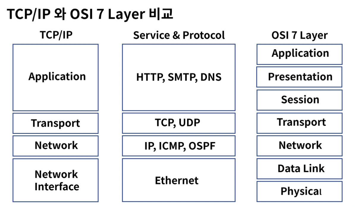 - 네트워크 프로토콜과 통신을 7 계층으로 표현