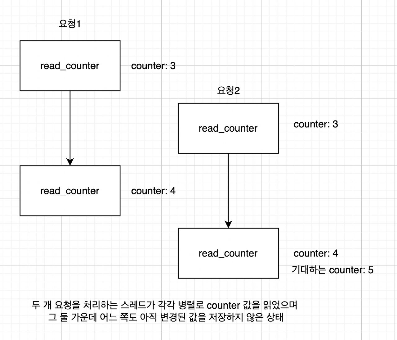 - 병행성이 심한 환경에서는 아래와 같은 경쟁 조건 이슈가 발생할 수 있음.