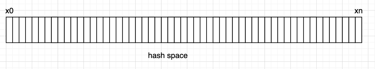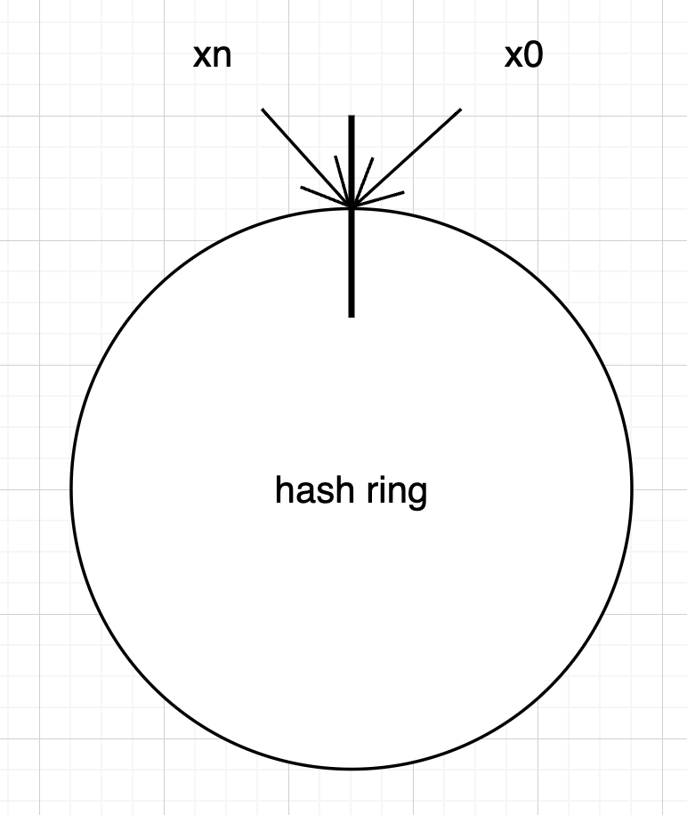 위 예시를 그림으로 표현하면 아래와 같다. hash space의 양쪽을 구부려 접으면 아래 그림과 같은 hash ring이 만들어진다.