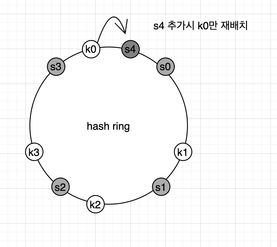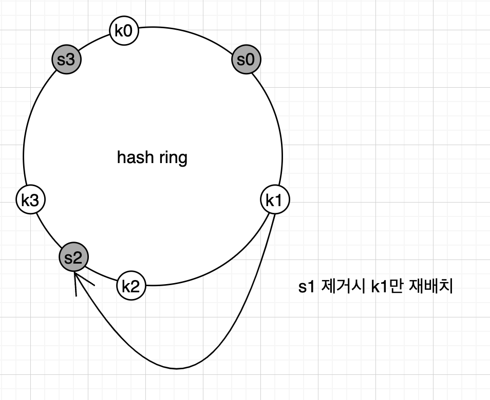 - 서버가 추가되거나 삭제될 때 재배치되는 키의 수가 최소화된다.