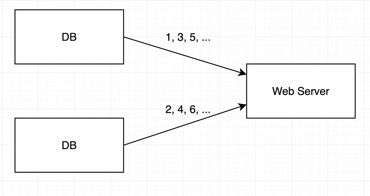 DB의 auto_increment 기능을 활용한다. 다만 다음 ID 값 구할 때 1을 증가시키는게 아니라, k(DB 서버의 수)만큼 증가시킨다.