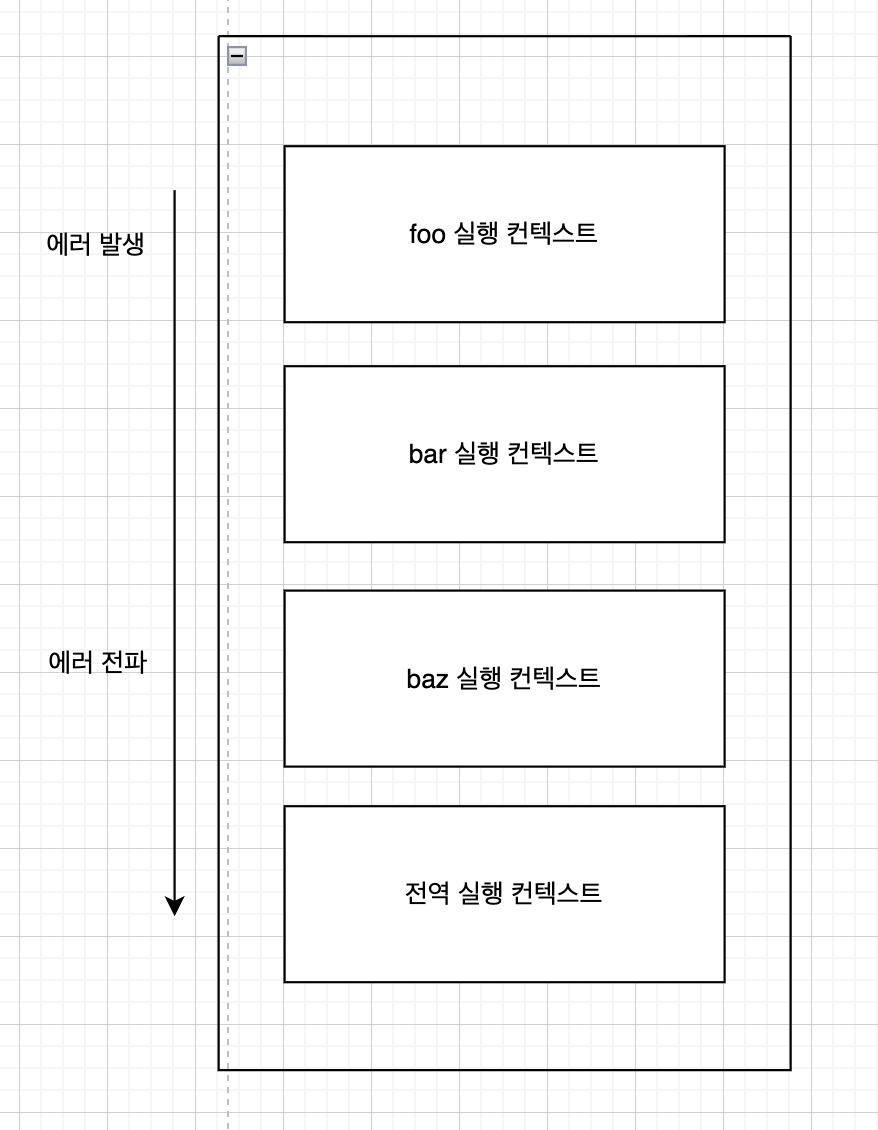 throw된 에러를 캐치하지 않으면 호출자 방향으로 전파된다. throw된 에러를 어디서도 적절히 캐치하지 않으면 프로그램은 강제 종료된다.